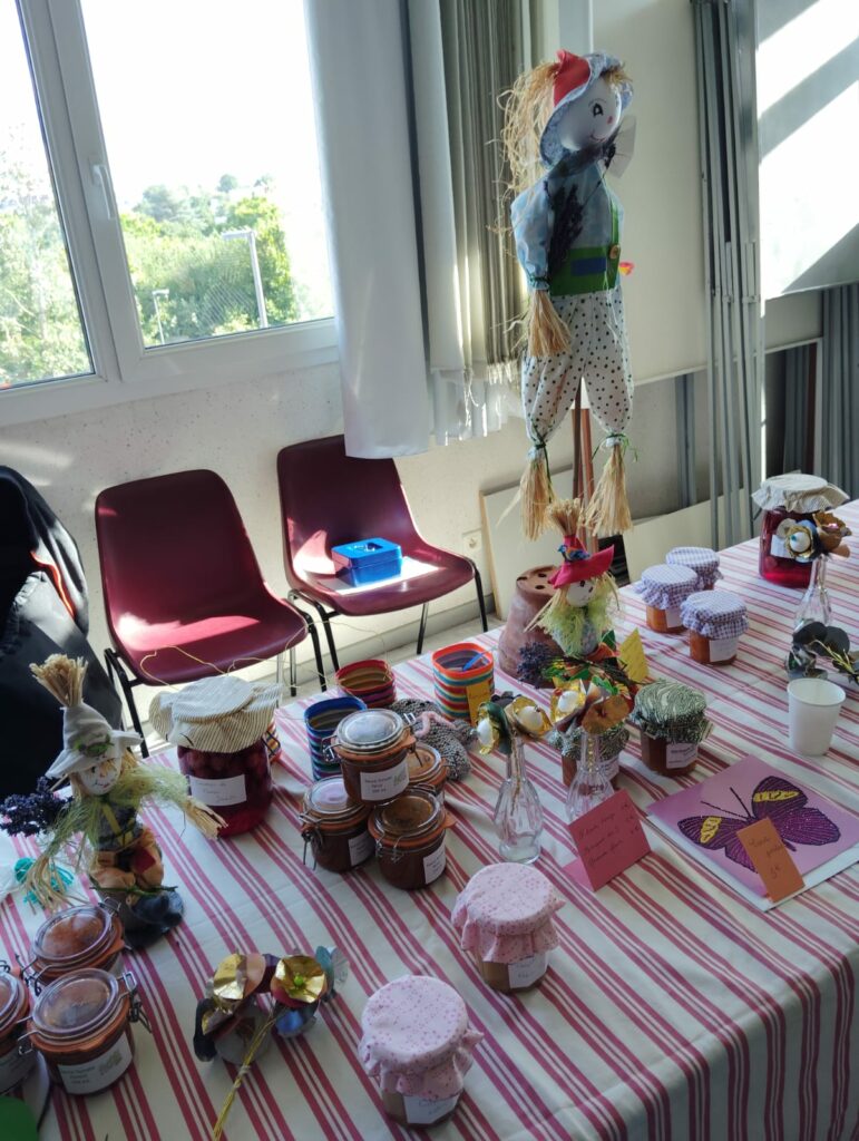 Un stand également été installé pendant l’assemblé, permettant de présenter le travail de la commission artisanat d’Emplettes & Cagettes. Elle réunit des adhérents qui souhaitent soutenir l’association en vendant leurs créations (décorations, confitures…)
